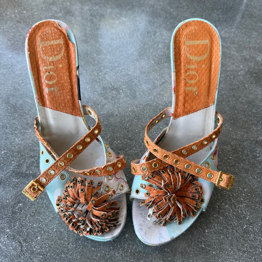 Galliano Dior S/S2003 Python + Silk Printed Mules - US 6.5
