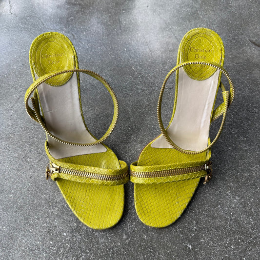 S/S2001 Galliano Dior Python Green Zipper Sandals - US 7