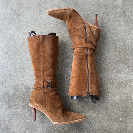 Gucci by Tom Ford Tobacco Suede Buckle Boots - US 6