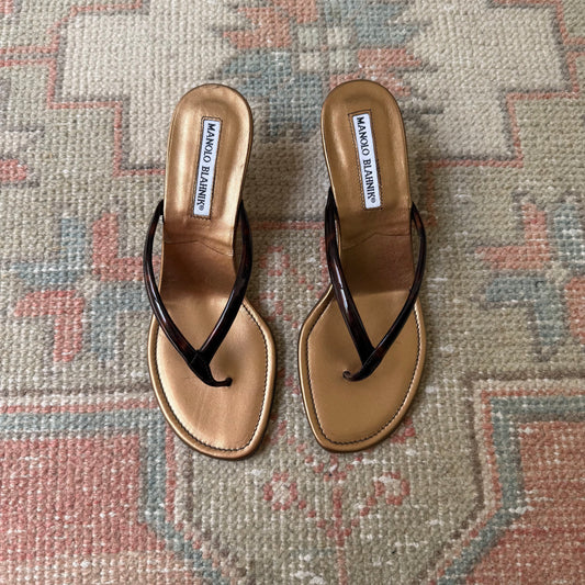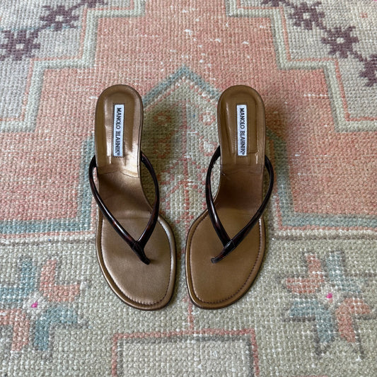 00s Manolo Blahnik Tortoise Thong Sandals - US 7