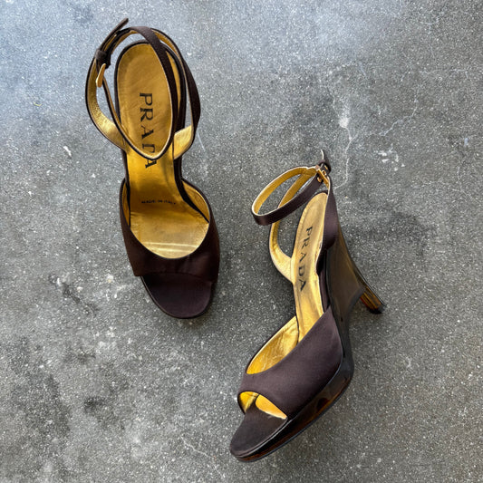 S/S1998 Prada Brown Lucite Wedges - US 7