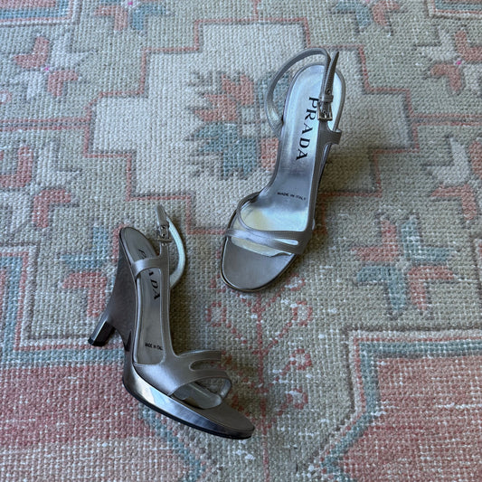 S/S1998 Prada Silver Satin Slingback Wedges - US 7