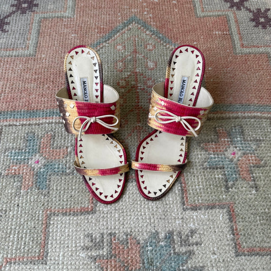00s Manolo Blahnik Lizard Bow Sandals - US 6-6.5