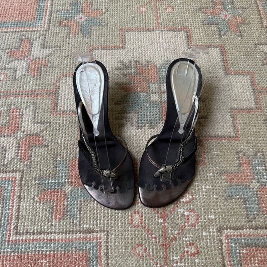 00s Silver Manolo Blahnik Thong Sandals - US 9.5