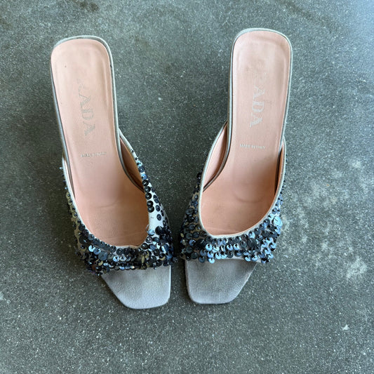 S/S1999 Prada Silk Satin Sequin Mules - US 7.5
