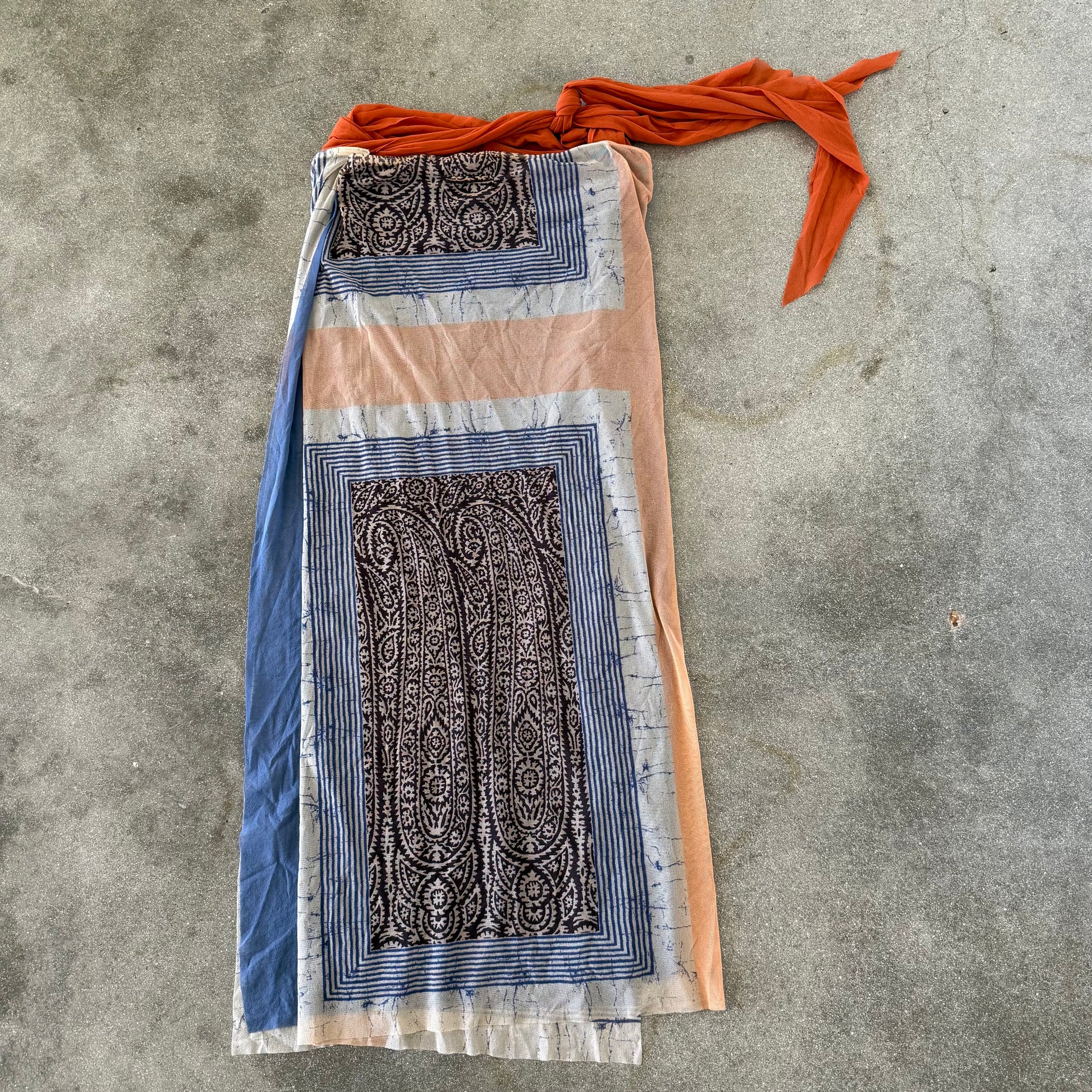 Super rare early 2000s Jean Paul Gaultier orange, blue and brown paisley and geometric print mesh wrap skirt. Labeled size large, but can fit any size XXS-XXL since the waist is fully adjustable. Pristine condition.