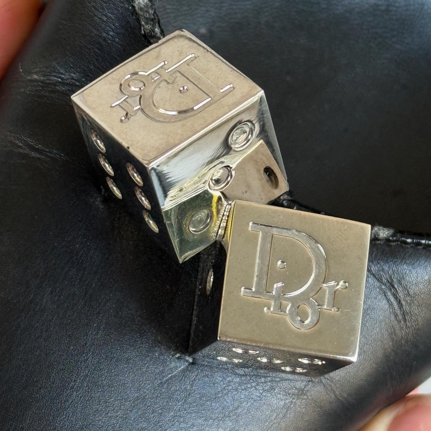 Ultra rare FW04 Galliano Dior dice black leather pumps. Labeled size 38, these fit a US 7.5-8 best. 4” heel. Leather piping peeled off, a couple light nicks on heels (shown in photos) otherwise very good condition.