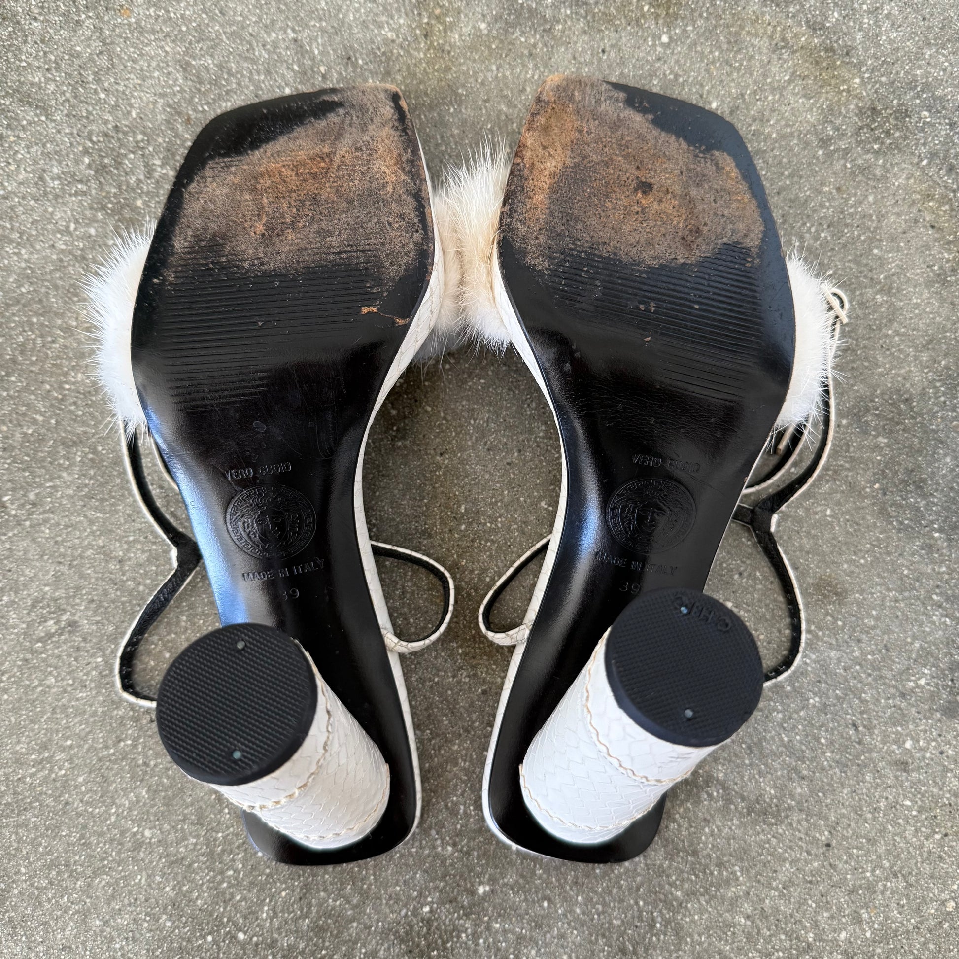 FW99 Gianni Versace Python & Mink Sandals - US 8-8.5